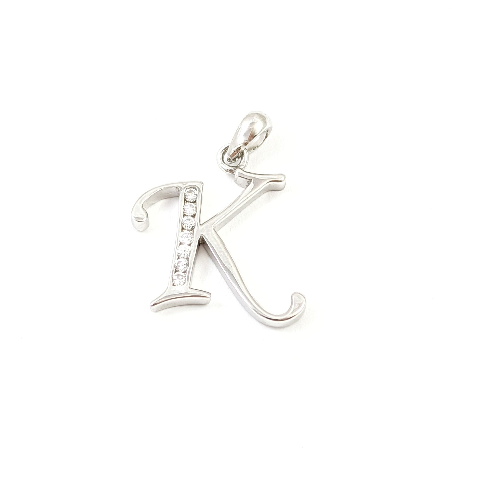 Colgante sin cadena de plata, inicial K con circonita Swarovski. Medidas inicial 22x19.
