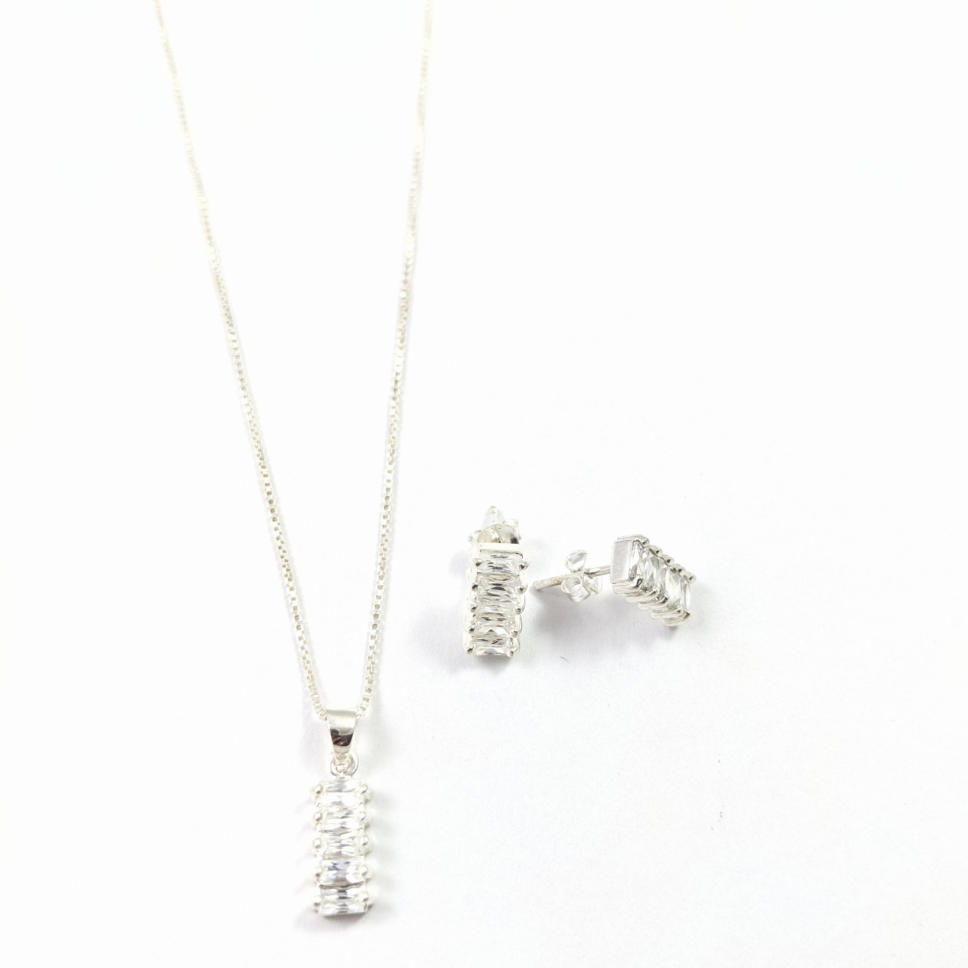 Conjunto de pendientes, colgante con cadena de plata y circonita Swarovski. pendientes cierre presión. Cadena de 42 cm.