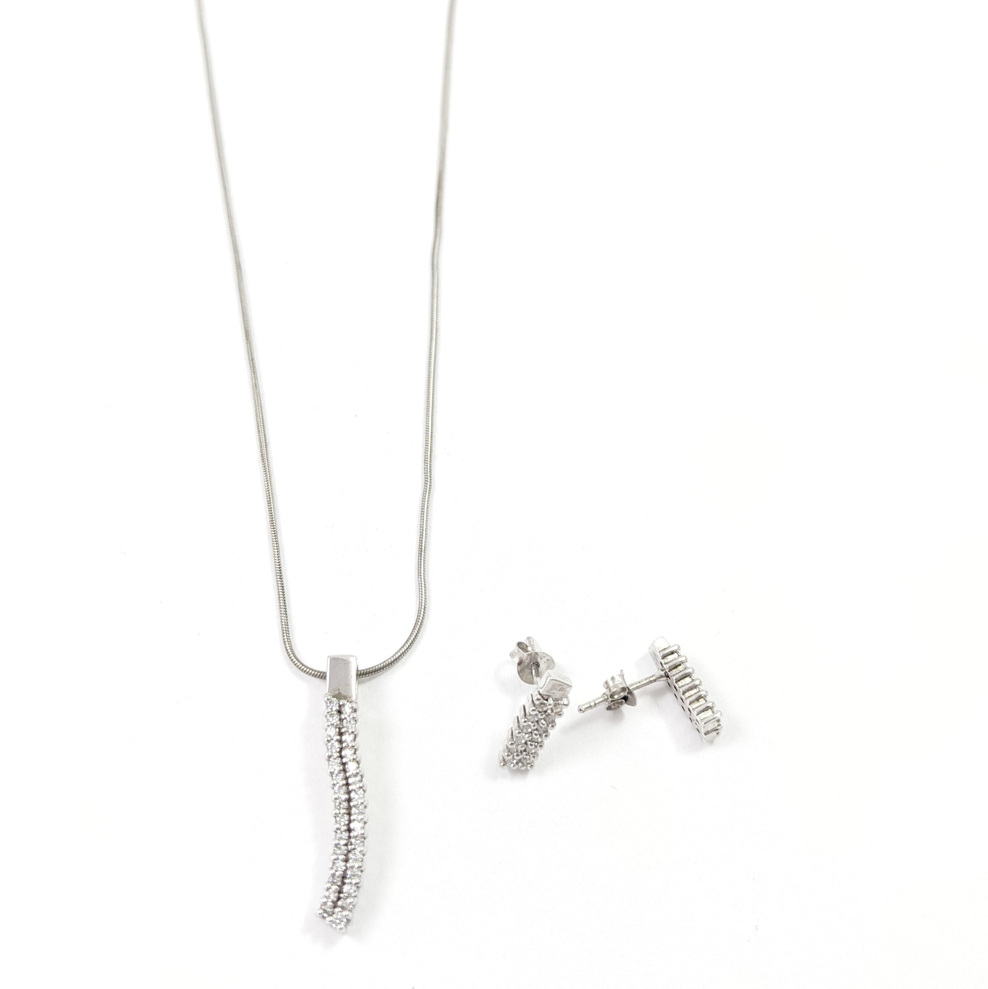 Conjunto de pendientes, colgante con cadena de plata y circonita Swarovski. Pendientes cierre presión. Cadena de 45 cm con cierre mosquetón.
