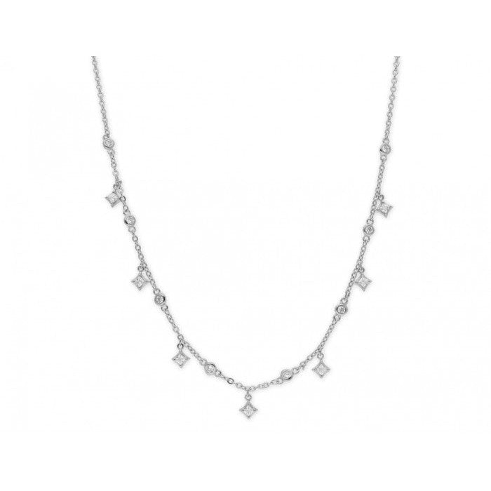 Gargantilla de plata y circonitas de Swarovski. Cadena de 45 cm ajustable en tres posiciones 40, 42 y 44 cm más cadena ajustable hasta 50 cm. Cierre mosquetón.